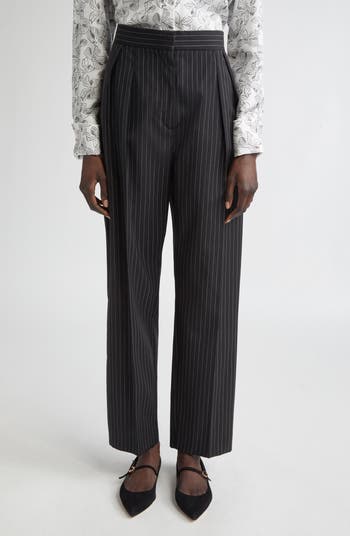Boardroom-approved pinstripes amplify the sartorial polish of these pleat-front pants tailored in a straight-leg cut from virgin wool.