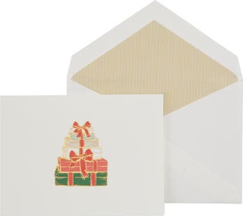 Crane Set of 10 Wrapped Gifts Holiday Note Cards, Main, color, White Multi