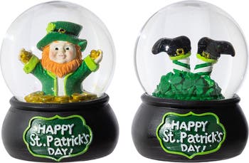 Glitzhome Set of 2 65mm St. Patrick's Resin Leprechaun Waterglobes, Main, color, Green