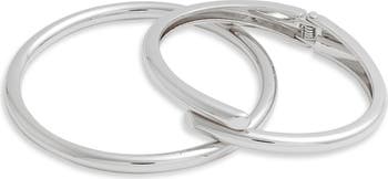 A smooth bangle and hinged bypass style comprise this set of two bracelets crafted from recycled metals and plated in gleaming goldtone or silvertone plate.