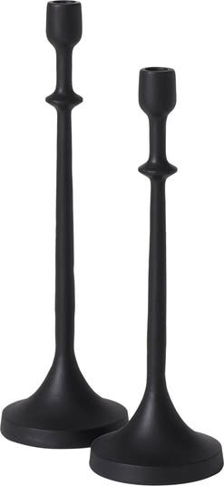 A matte finish highlights the statuesque silhouette of these candleholders that make an elegant addition to your decor displayed together or on their own.