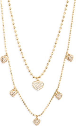 Sparkling hearts adorn a set of two necklaces that shine bright whether worn separately or twinkling together.