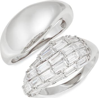 Nordstrom Set of 2 Cubic Zirconia Sculpted Rings, Alternate, color, Sterling Silver Plated