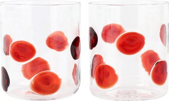This set of drink glasses are made in Veneto, Italy from mouthblown borosilicate glass, making them highly durable yet lightweight, while the drop pattern creates a playful touch to your barware.