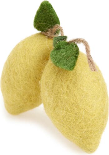 Serve your furry friend a heaping helping of farm-fresh fun with this soft, durable lemon duo handcrafted from densely felted wool. Perfectly sized for batting, chasing and stashing in secret hiding spots, this play-friendly produce also has a practical use—the firm wool fibers act as a natural floss to help keep kitty's teeth clean.