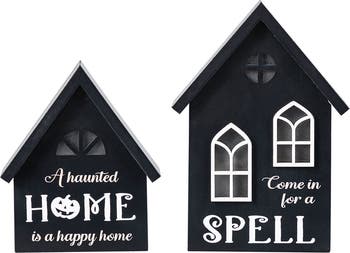 Enchant your Halloween festivities with our warm white Lighted Halloween Wooden House-shaped Table Decor, a set of two sizes that brings a spellbinding charm to your decor. With their glowing windows and Halloween words that play on the theme of magic and mystery, these pieces are perfect for setting a table that's a tale of Halloween cheer.