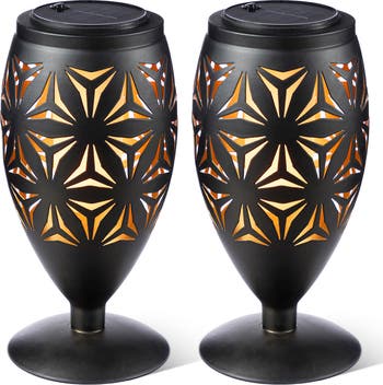 Transform your garden, patio or yard to be a bright, charming and delightful environment with this stylish solar lantern. It features delicate cutout geometric patterns and warm yellow LED light that casts flickering flame lights and shadows, adding artistic beauty and visual interest to your space.