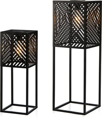 Inspired by traditional woven lanterns, this innovative design features a skillful combination of geometric metal stripes and a vintage Edison bulb that cast intriguing lights and shadows, adding artistic beauty and visual interest to your space. Whether displayed alone or grouped, this eye-catching, versatile, and convenient solar light set is destined to be a standout focal point. It is truly an excellent addition to your dining time, cocktail gatherings, or yard games!