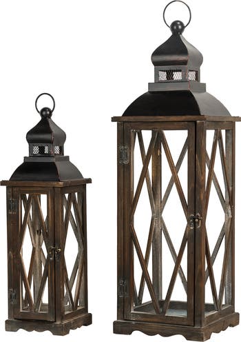 Add a rustic touch to your home decor or outdoor ambiance with the Glitzhome 2-piece Vintage Farmhouse Style Wood/Metal Lantern Set. Featuring a hinged door and a swing latch with high-quality hinges, these lanterns are perfect for placing your favorite candle or LED candle inside. The open design makes it easy to light and replace candles. Suitable for both indoor and outdoor use, this lantern set arrives fully assembled for your convenience.