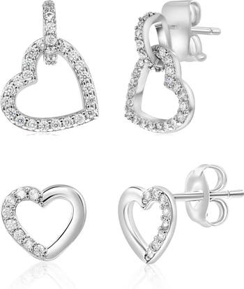 Set Of 2 Pave Heart Earrings