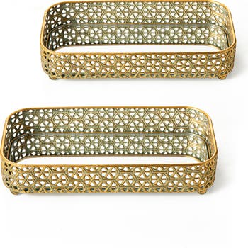 The classic rectangular shape, combined with antique craftsmanship and high-quality metal materials, features exquisite hollowed-out patterns that are eye-catching and resistant to discoloration and deformation. This practical and decorative retro-styled tray is designed to store your daily essentials, helping reduce countertop clutter while maintaining clear organization at a glance. Perfect for your personal dresser or nightstand, it keeps all your jewelry—rings, earrings, necklaces, and trinkets—within easy reach.