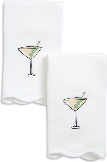 Add a fun flourish to your bathroom with this duo of scalloped towels featuring an embroidered flatweave front and absorbent terry-cloth backing. Bonus: built-in loops make them easy to hang (and dry quickly) between uses.