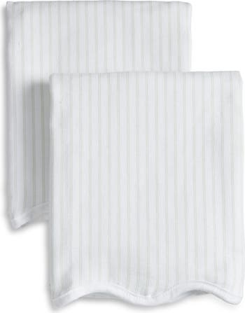 Add a playful touch to your kitchen with this pair of scalloped kitchen towels featuring a patterned flatweave front and absorbent terry-cloth backing. Bonus: built-in loops make them easy to hang (and dry quickly) between uses.