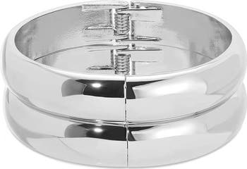 Stack on the shine with this set of hinged bangle bracelets plated in highly polished 18-karat yellow gold.