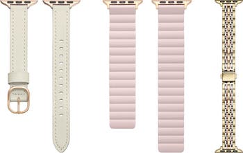 Perfectly personalize your Apple Watch to match the vibe of professional and casual ensembles alike with this trio set of assorted watchbands including a polished tri-tone bracelet, a leather version and a durable silicone option.