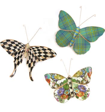 Brighten up your wall decor with this charming set of butterflies that appear to flutter and fly. An adjustable metal hanger on the back lets you hang them on the wall at different angles.