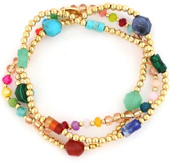 A trio of stretch bracelets set with a mix of beads and baubles are elegantly entwined and sure to enchant.