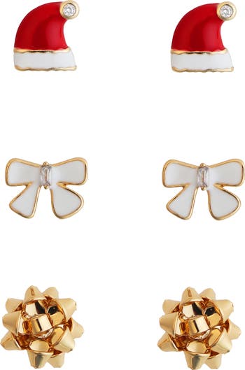 Complete your look with the irresistibly festive style of this collection of bow and Santa hat stud earrings.