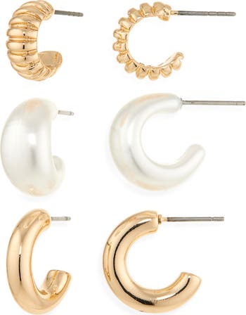 Bring shine and texture to your look with this set of hoop earrings that showcase a chunky silhouette.