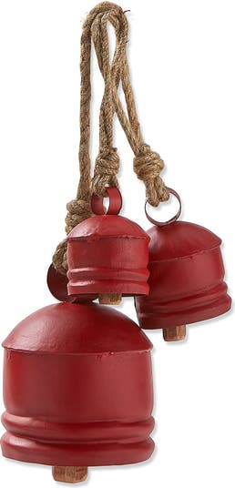 add a distinctive, magical touch to your home this holiday season. made from wrought iron and jute this hanging bell set is the perfect addition to any mantel, window ledge, or doorway. mix and match with multiple sizes and styles for a more dramatic effect. hand assembled. slight color variations are to be expected—each piece is one-of-a-kind, no two pieces will be exactly alike.