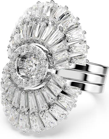 Laser-cut cubic zirconia form a brilliant starburst on this three-piece cocktail-ring set that makes a glamorous statement piece.