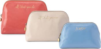 Graduated in size and scripted with sweet messages, this colorful set of giftable pouches will be welcome for travel days and beyond.