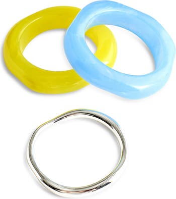 Coming in a set of three, these playful mix of resin and metal bangles feature a sculptural design. Stack them up or wear one at a time.