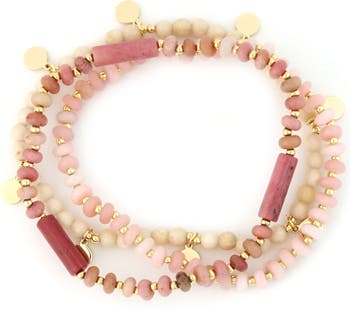 Perfect for everyday wear, these stackable stretch bracelets are traced by glossy 14-karat gold-plated beads and polished stones in warm and neutral hues.