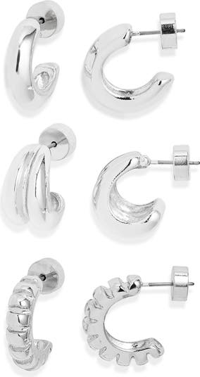 Set of 3 Textured Hoop Earrings
