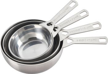 A great addition to your standard measuring cups, this set is crafted in larger sizes perfect for batch baking, meal prep or portioning food. The heavy-guage stainless steel has a polished interior and brushed exterior that's durable and easy to clean.