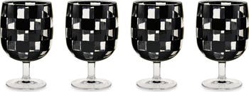Make the ocassion more special when you set the table with these four goblets hand painted with bold checks.