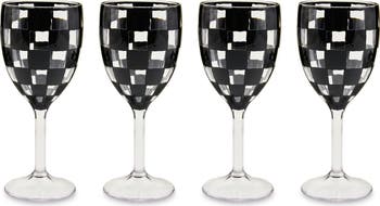 Set of 4 Black Check Acrylic Wine Goblets