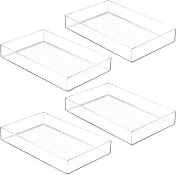 - DURABLE DESIGN - Eliminate storage pain points inside cluttered drawers with our iDesign Clarity Makeup Drawer Organizer Tray; The crystal-clear plastic construction and shallow sides lend a modern flourish while allowing you to quickly inventory everything inside; Set of 4