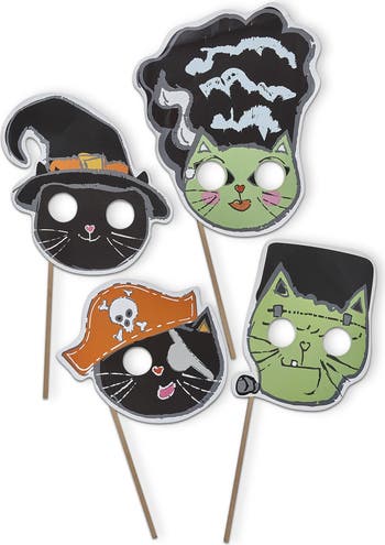 - Add playful charm to your Halloween decor with our Set of 4 colorful monster masks.