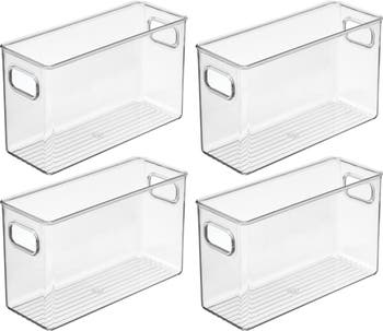 Keep everything tidy and simplify your daily routine with the iDesign Set of 4 Plastic Pantry Bins. The spacious, open-top design grants immediate reach-in access to everyday essentials, including pantry staples, baking supplies, kitchen linens, and more. The built-in handles provide an easy grip when sliding the bin off shelves or moving it wherever you need, ensuring everything is within arm's reach. Designed with versatility in mind, this plastic storage bin stores household odds and ends in offices, closets, bedrooms, or anywhere else throughout the home that needs organizing. With iDesign, you can live simply every day.