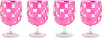Set of 4 Pink Check Acrylic Water Goblets