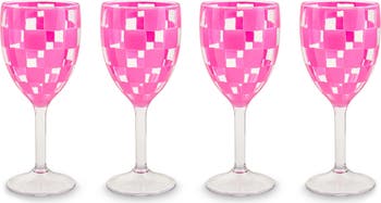 Set of 4 Pink Check Acrylic Wine Goblets