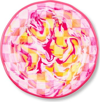 Set of 4 Pink Marble Check Melamine Dinner Plates