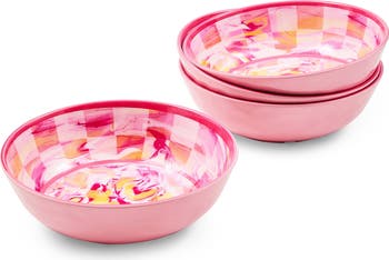 Set of 4 Pink Marble Check Small Melamine Bowls