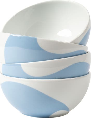 Ocean-inspired waves lap at the glossy exterior of these hand-finished porcelain bowls that make a stylish choice from breakfast to dessert.