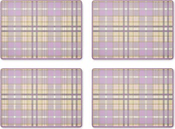 Set of 4 Tartan Violet Check Cork Back Placemats