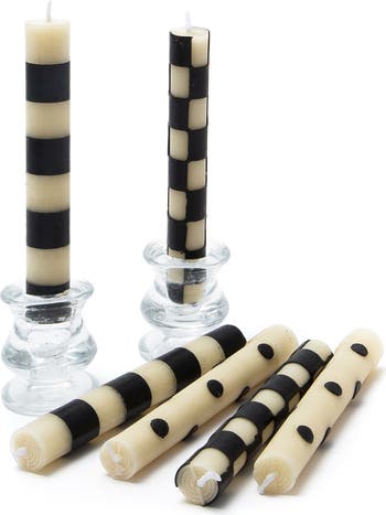 Hand-applied black accents charm this set of six beeswax-blend taper candles, sure to bring a dose of whimsy to your dinner table decor.