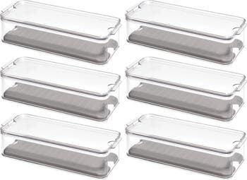 - DRAINAGE TRAY - The iDesign Crisp Produce Bins keep fruits and vegetables fresher for longer; The removable drainage tray prevents produce from bruising and provides additional airflow; This space-efficient design makes the most of fridge space by stacking neatly on shelves or tucks discreetly inside dairy and crisper drawers; Set of 6