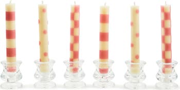 Hand-applied pink accents charm this set of six beeswax-blend taper candles, sure to bring a dose of whimsy to your dinner table decor.