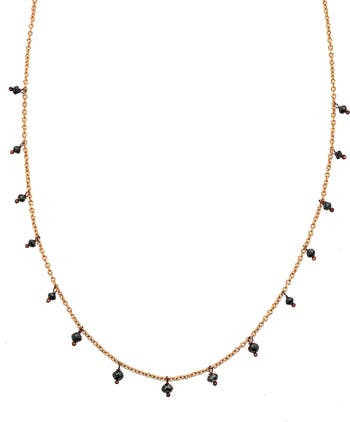Contemporary charm meets Old World glamour in this stunning necklace of 18-karat gold with 15 dangling black diamonds.