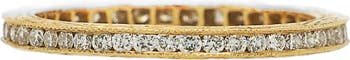 Celebrating love eternal, a carved band of 49 brilliant-cut diamonds channel set in 18-karat yellow gold dazzles on its own or stacked with other rings.