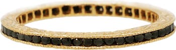 Intricate engraving paired with brilliant sparkle makes this 18-karat-gold band encircled with 41 diamonds an absolute beauty.