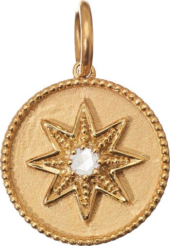 A single rose-cut diamond adds extra twinkle to this star-centered pendant that embellishes your favorite chains.