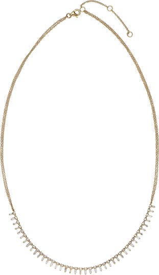 A stunning strand of baguette and round diamonds brings modern brilliance to this necklace suspended from layered 18-karat gold chains.