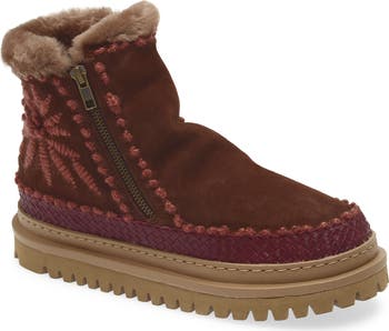 Bring timeless style to your cold-weather look with this ankle boot made with a durable suede upper, genuine-shearling lining and a lugged outsole. Hand-stitched details complete this look with rustic charm.